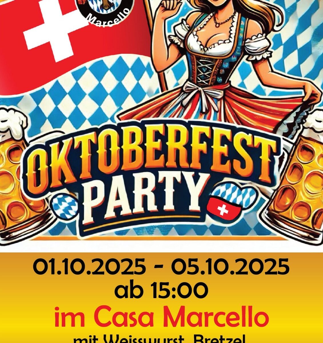 im Casa Marcello haben wir für euch kulinarische Schmankerl und Musik aus München parat und das Bier fliesst in Maßen! Erstmalig neu dieses Jahr: Wir haben einen echten Bierklassiker aus München während der Oktoberfest Party 2025 für euch mit am Start